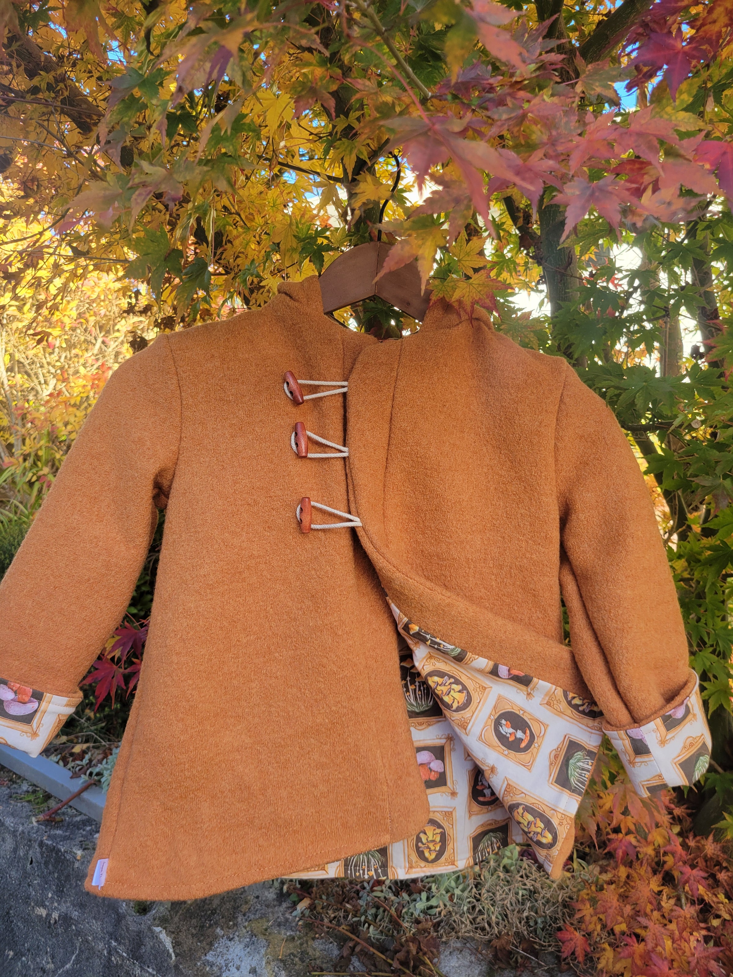 Constructed of wool, cotton and wood this cloak will keep even the smallest travellers, foragers and adventure seekers cozy.
